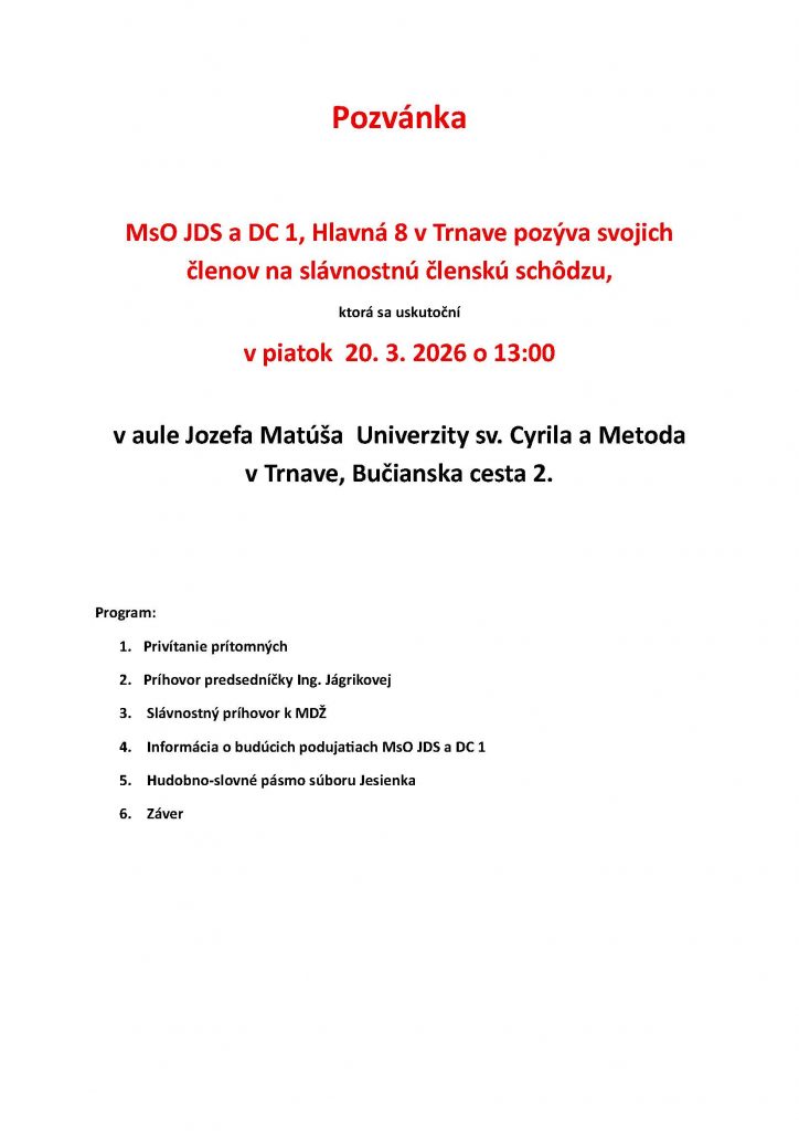 Výbor DC-1 Hlavná 8 a MsO JDS oznamujú svojim členomakcie, ktoré sa budú konať v najbližšom obdob