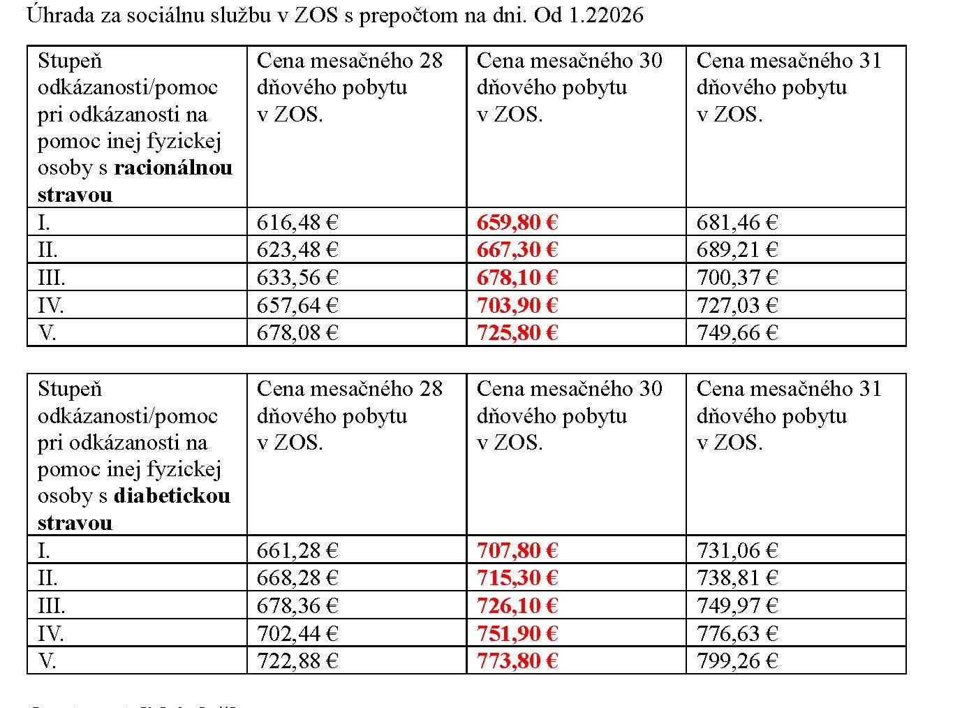 Na základe ročného vyúčtovania nákladov k 1.7.2025 sa cena racionálneho stravovania na deň ( raňajky, desiata, obed, olovrant, večera) stanovuje v sume 5,54 €.